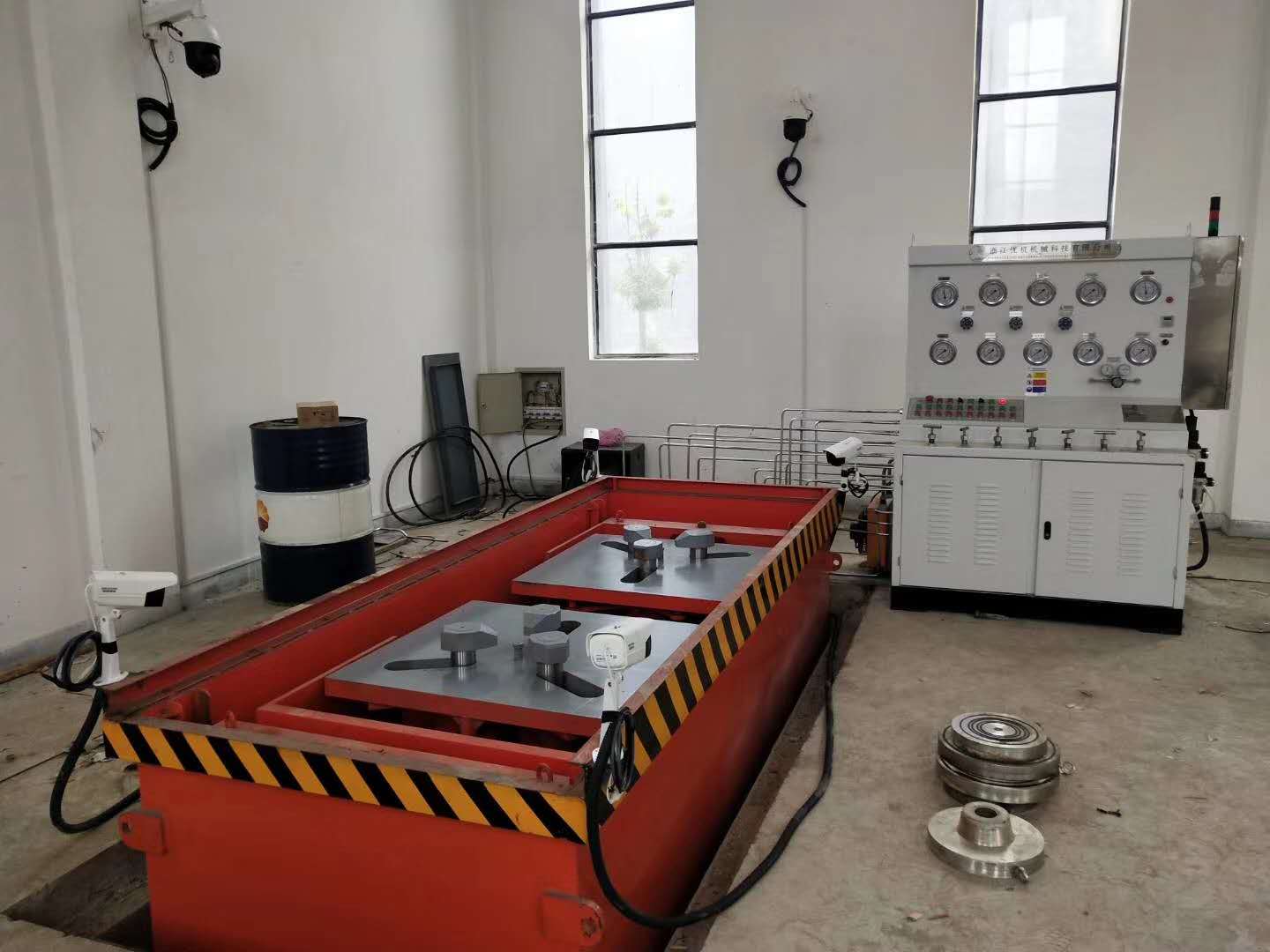 因該項目涉及國防軍工用閥門產品,產品技術細節(jié)和用途工況經過雙方商定給與保密,項目主要涉及高壓氣體閥門壓力試驗和壽命測試,浙江優(yōu)機作為該企業(yè)優(yōu)質合作供應商和該國防軍工企業(yè)有多年和項目合作業(yè)績,此次項目主要設計氣體高壓和保壓壽命試驗,主要有智能監(jiān)控系統(tǒng)、人機分離保護和遠距離高清監(jiān)控、液壓夾緊工作臺、沉水水箱、氣體增壓系統(tǒng)等。本次所供產品技術含發(fā)明專利技術2項產品,專利號:ZL 2016 10240324.1和ZL 2016 1 0260566.7,主要針對高壓氣體工況閥門試驗測試。