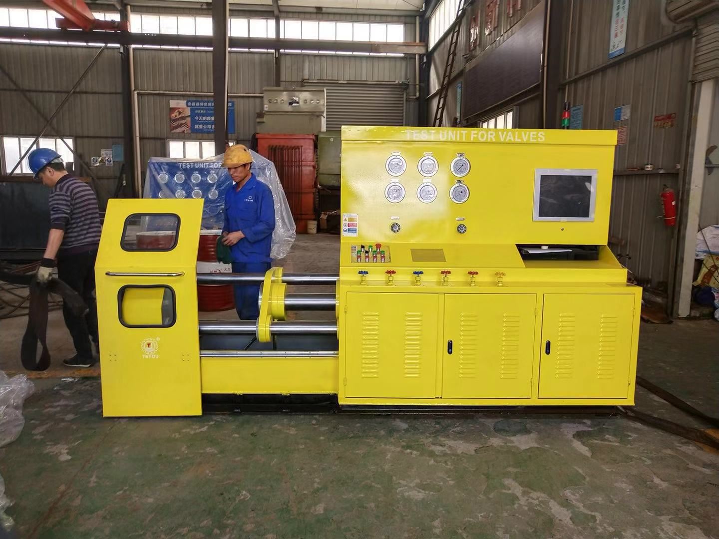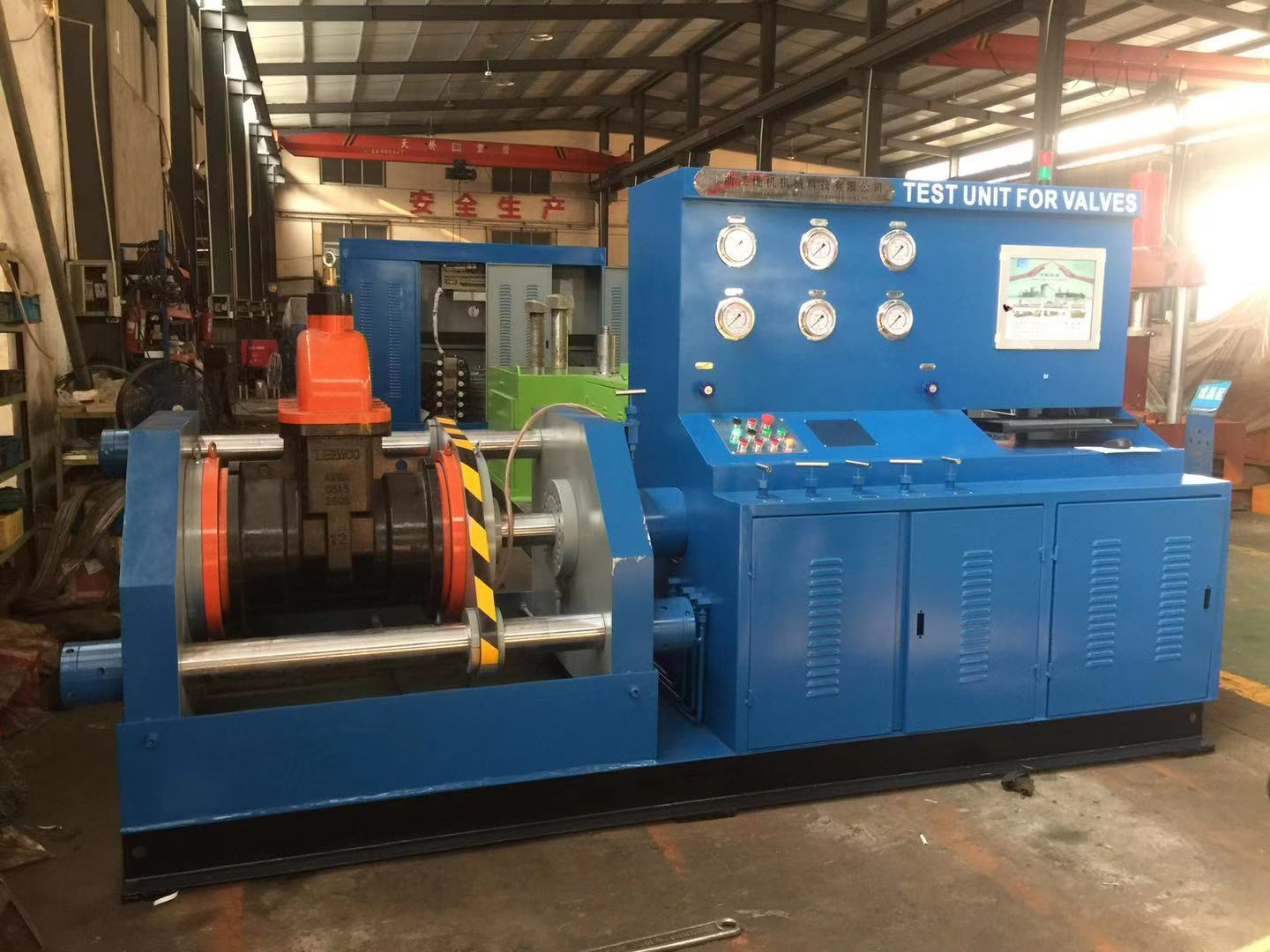 工作過程:根據(jù)閥門的公稱通徑和壓力調(diào)整油缸壓緊壓力——壓緊工件——打開低水泵快速注水——打開高壓水泵——保壓計(jì)時(shí)——卸壓、復(fù)位。