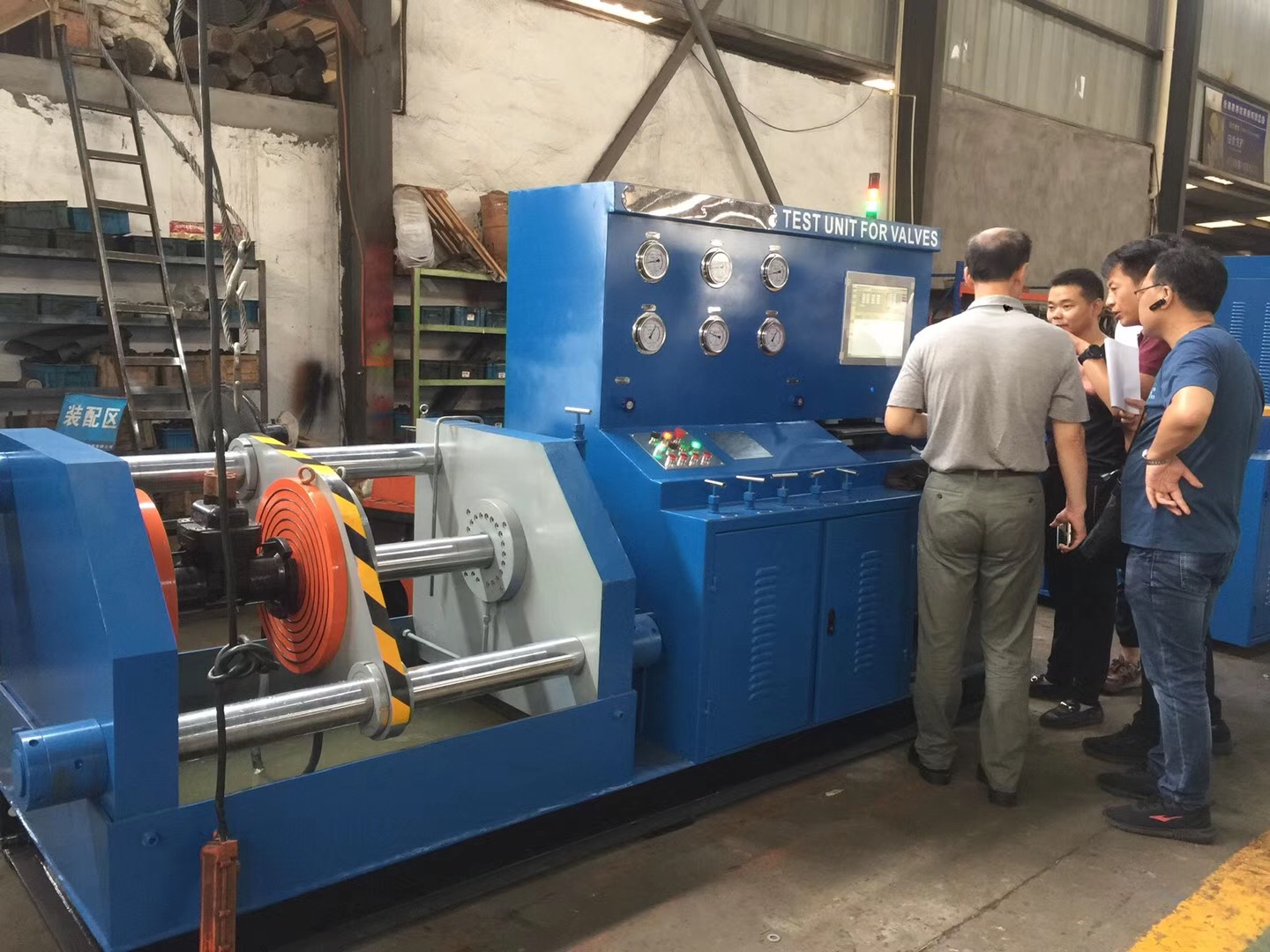近日,美國(guó)亨利閥門(mén)(大連)公司總經(jīng)理龍先生一行三人來(lái)浙江優(yōu)機(jī)公司查驗(yàn)智能閥門(mén)試驗(yàn)臺(tái)對(duì)該公司的軟密封閘閥性能測(cè)試進(jìn)行現(xiàn)場(chǎng)驗(yàn)收,一起來(lái)的還有公司采購(gòu)代表宋先生、生產(chǎn)部劉經(jīng)理等人。本次查驗(yàn)的設(shè)備是7月份定制的JWT-Z400型頂壓式智能閥門(mén)測(cè)試臺(tái),該產(chǎn)品是公司新型產(chǎn)品,擁有兩項(xiàng)技術(shù)發(fā)明技術(shù)知識(shí)產(chǎn)權(quán),也亨利公司第二次采購(gòu)浙江優(yōu)機(jī)的閥門(mén)試驗(yàn)設(shè)備產(chǎn)品,由于操控性能精確度高技術(shù)要求完全代替歐美同類(lèi)產(chǎn)品, 因此亨利公司設(shè)備技術(shù)總監(jiān)宋先生再次采購(gòu)該機(jī)型,給美國(guó)在中國(guó)的生產(chǎn)線分廠替代老化的進(jìn)口舊閥門(mén)測(cè)試臺(tái)。獲悉,經(jīng)過(guò)多年的創(chuàng)新和摸索浙江優(yōu)機(jī)公司各大系列產(chǎn)品性能和人性化設(shè)計(jì)不斷改良,該公司技術(shù)研發(fā)部已經(jīng)申報(bào)發(fā)明技術(shù)專(zhuān)利多項(xiàng),2018年有四項(xiàng)產(chǎn)品通過(guò)浙江省工業(yè)新產(chǎn)品鑒定,是省市級(jí)科技型企業(yè).秉持生產(chǎn)重細(xì)節(jié),售后重反饋,各種機(jī)械性能指標(biāo)日益成熟,出口市場(chǎng)有東南亞市場(chǎng)為主逐漸轉(zhuǎn)向歐美中高端市場(chǎng),逐步成為國(guó)內(nèi)外知名專(zhuān)業(yè)制造商之一。